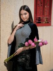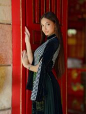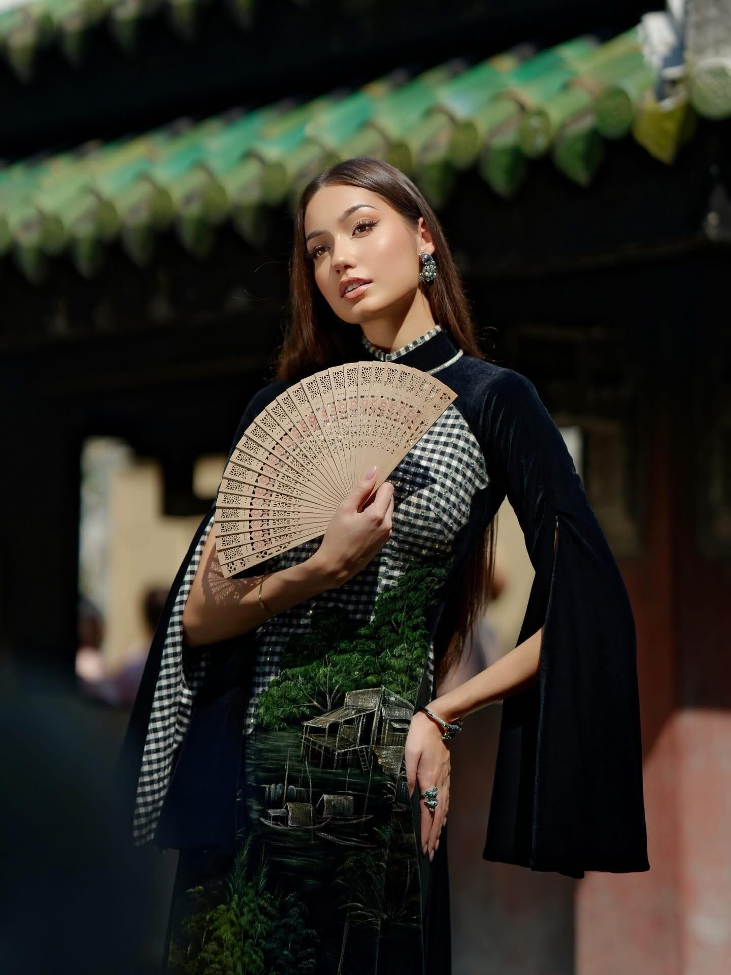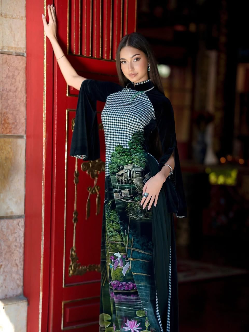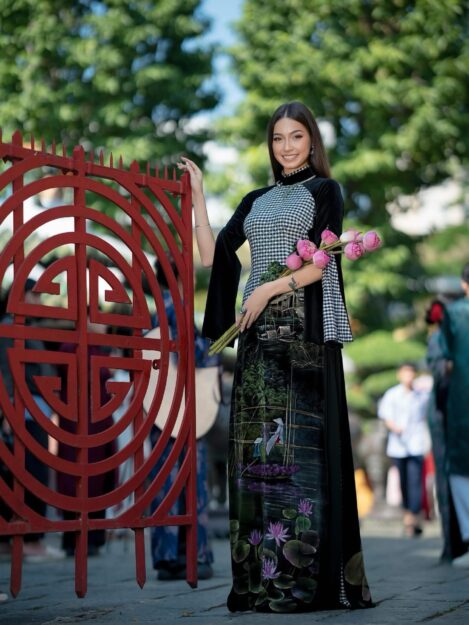 Mam na sobie wyjątkową ręcznie zdobioną suknię áo dài. Motyw lotosu symbolizuje czystość, odrodzenie i wewnętrzny spokój, a sceny zbierania ryżu nawiązują do pracy, obfitości i szacunku do ziemi – wartości głęboko zakorzenionych w wietnamskiej kulturze 🇻🇳